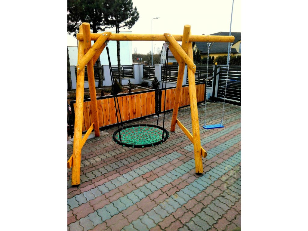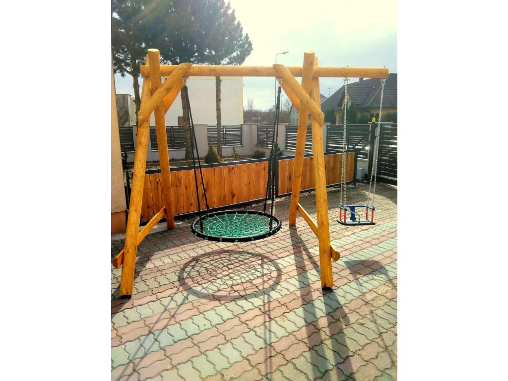 Houpačka Hnízdo se postará o hodiny smíchu a pohybu na vaší zahradě. Díky velkému průměru sedáku pojme více dětí najednou a promění každé houpání v dobrodružství. Stabilní rám z masivního dřeva zajišťuje bezpečnost, zatímco impregnace chrání dřevo před povětrnostními vlivy. Součástí setu je i boční sedák, takže zábava může být ještě pestřejší.