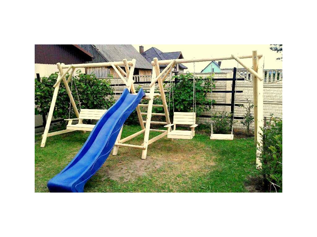 Houpačka se skluzavkou promění každou zahradu v místo, kde se děti nebudou chtít přestat bavit. Kombinace houpačky a dlouhé skluzavky nabízí nekonečné hodiny smíchu a pohybu. Masivní dřevěná konstrukce zajistí stabilitu a bezpečí, impregnace ochrání povrch proti povětrnosti.